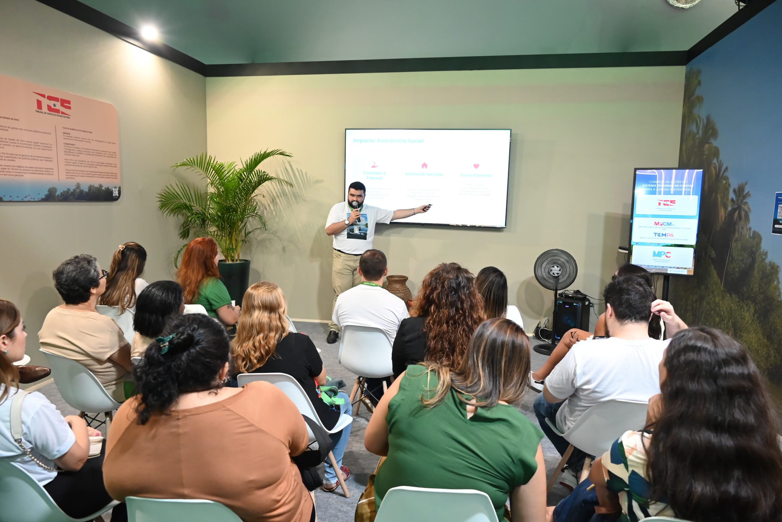 O estande do Sistema Tribunais de Contas apresentou na tarde desta segunda-feira, 17, a palestra “Impactos das Políticas Públicas para a Primeira Infância” ao público da Green Zone, dentro da programação da 30ª Conferência das Nações Unidas sobre Mudanças Climáticas, a COP30, que ocorre em Belém, Pará.