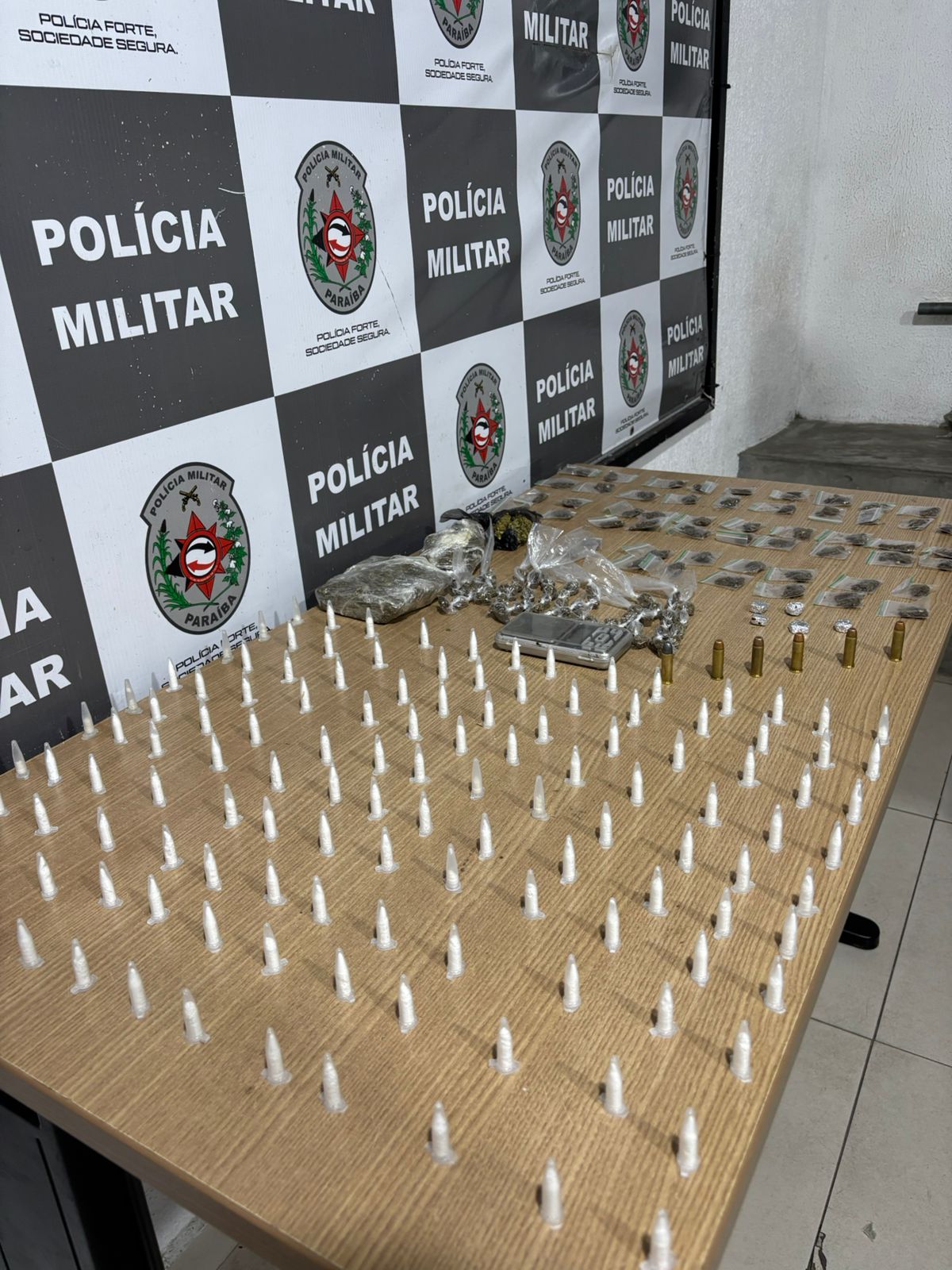 Traficantes que estariam agindo durante a madrugada desta sexta-feira (7), na comunidade conhecida como “Cagepinha”, no bairro de Mangabeira VIII, na zona sul de João Pessoa, foram surpreendidos por um cerco realizado pela Força Tática do 5º Batalhão e fugiram por uma área de mata. Na ação, a PM apreendeu aproximadamente um quilo de maconha, cento e vinte e sete pinos de cocaína, munições de revólver e uma balança de precisão.