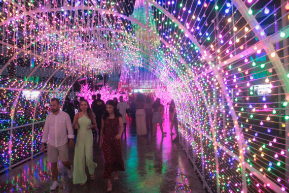 A decoração do “Jardim Encantado” tem túnel de luz logo no Portal de Entrada; borboletas gigantes; bosque de cerejeiras cor-de-rosa; uma árvore digital no meio do jardim com projeção de imagens animadas e trilhas sonoras; céu nevado; além do letreiro iluminado do Natal de Luz e das fachadas dos prédios que viraram grandes caixas de presentes luminosas.