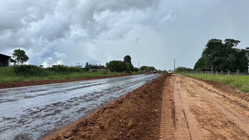 Os serviços incluem tratamento de camadas, sub-base, base, imprimação em 400 metros e a aplicação da capa asfáltica em 2,5 quilômetros da rodovia