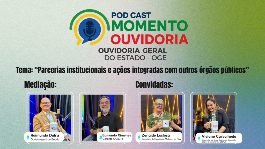 A Ouvidoria-Geral do Estado do Piauí (OGE/PI) lançou o último episódio da temporada do Podcast “Momento Ouvidoria”, trazendo o tema “Parcerias institucionais e ações integradas com outros órgãos públicos”. A edição encerra um ciclo de diálogos que valorizam a escuta, a transparência e a participação social e reforça como a cooperação entre instituições é essencial para uma gestão pública mais eficiente, humana e acessível.