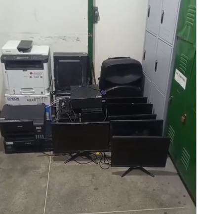As diligências iniciaram após equipes da Polícia Civil receberem informações sobre um furto em uma escola. Durante buscas, os policiais encontraram em um local sem habitação os bens subtraídos. Foram recuperados: computadores, monitores, impressoras e uma caixa de som.