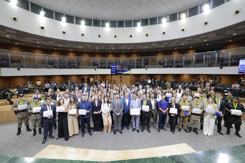 A Assembleia Legislativa do Estado de Goiás (Alego) realizou, na tarde desta segunda-feira, 8, sessão solene extraordinária para honrar servidores públicos ligados às relações institucionais. Na ocasião, foram concedidos o Título Honorífico de Cidadania Goiana, a Medalha do Mérito Legislativo Pedro Ludovico Teixeira e o Certificado do Mérito Legislativo, por iniciativa do deputado Amilton Filho (MDB). O evento teve lugar no Plenário Iris Rezende.