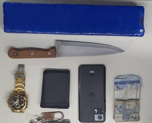 Na primeira delas, um indivíduo foi detido ao tentar fugir a bordo de um veículo. Com ele, foram encontradas um tablete de maconha contendo 1kg da droga e uma faca.