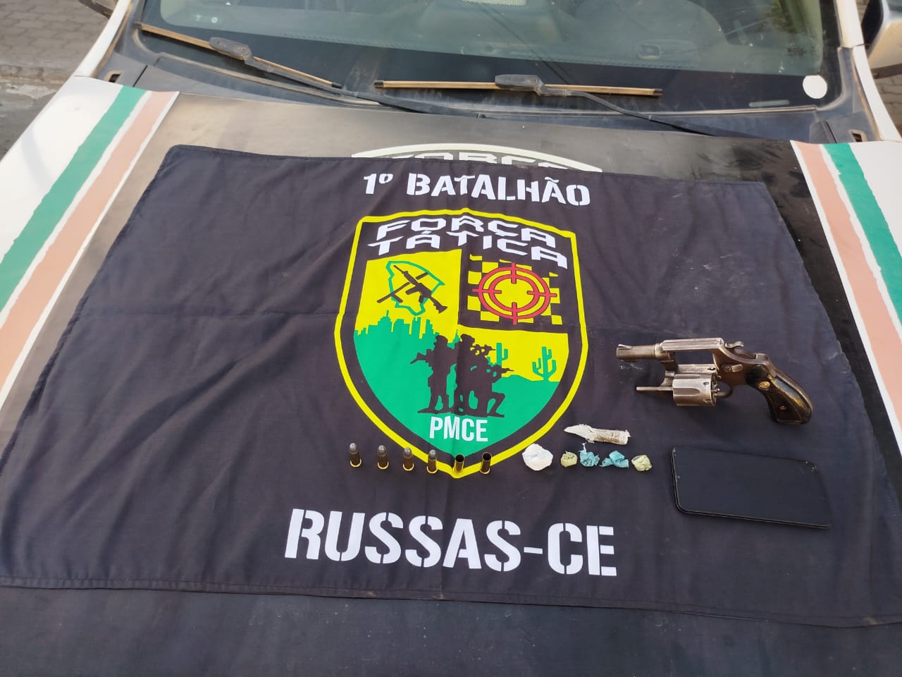Na ação, foram apreendidos um revólver calibre .38, munições, um aparelho celular, além de pequenas quantidades de cocaína e maconha. Todo o material foi apresentado na Delegacia de Russas, onde foi instaurado procedimento policial para apuração dos fatos.