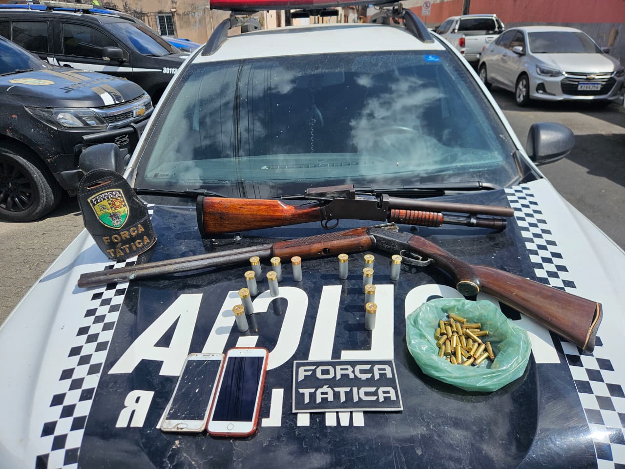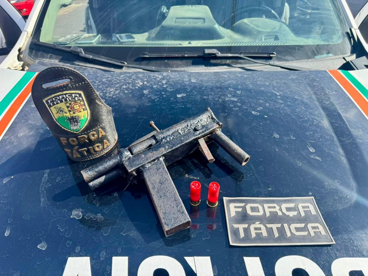 Já na segunda ocorrência, com informações da Coordenadoria de Inteligência (Coin) da Secretaria da Segurança Pública e Defesa Social do Estado do Ceará (SSPDS-CE) e pela Subagência de Inteligência (SA) do 12º BPM, as equipes da Força Tática se deslocaram até a rua Manoel Branco, no bairro Guaié, onde localizaram uma arma artesanal calibre 12 e duas munições calibre 12 em uma área de mangue.