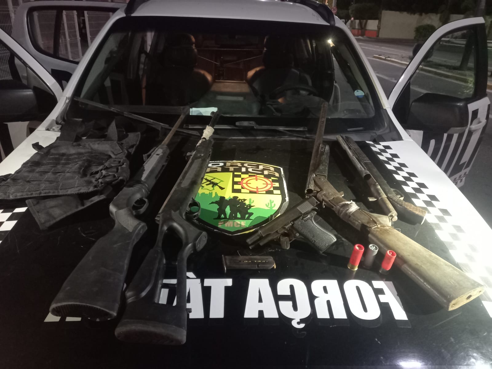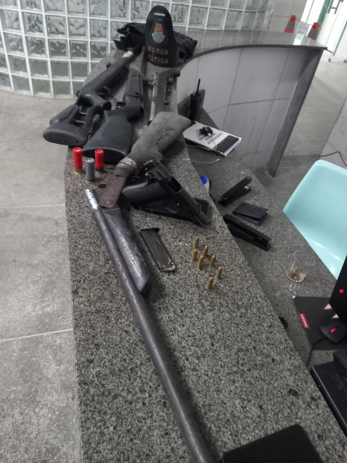 A operação resultou na apreensão de: uma pistola Imbel 9mm, duas armas artesanais calibre 12, duas carabinas calibre .22 sem numeração, sete munições calibre 9mm, três munições calibre 12, um iPhone branco, um tablet Samsung, uma capa de colete balístico e o veículo Chevrolet Onix.