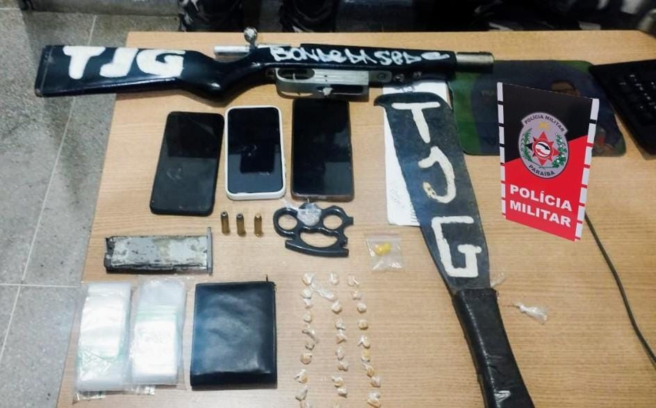 A apreensão foi realizada durante rondas, quando a viatura percebeu que suspeitos entraram rapidamente na sede ao notarem a presença da PM. Na revista, a arma foi localizada enrolada em um pano e os entorpecentes e outros materiais estavam escondidos em um fogão.
