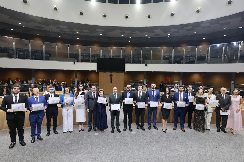 A Assembleia Legislativa de Goiás (Alego) prestou tributo aos cartorários goianos reconhecidos com o Prêmio de Qualidade Total da Associação dos Notários e Registradores do Brasil (Anoreg), o PQTA 2025, em sessão solene extraordinária, realizada na noite dessa sexta-feira, 19. Durante a solenidade, titulares de cartórios premiados receberam o Certificado do Mérito Legislativo, em reconhecimento aos relevantes serviços prestados ao estado. A honraria é uma iniciativa proposta em conjunto pelos deputados Veter Martins (UB) e Lineu Olimpio (MDB).