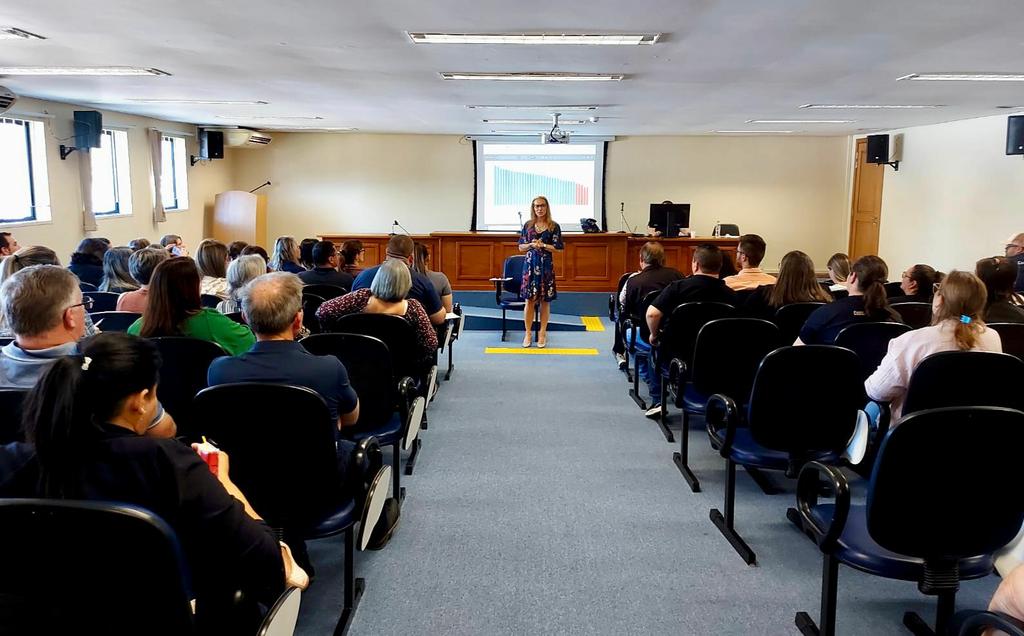 O procurador de Justiça Fábio Costa Pereira e o promotor Leonardo Rossi conduziram a exposição do projeto, que tem como foco a capacitação de profissionais da educação, famílias, agentes públicos e membros da rede de proteção para a identificação precoce de sinais e comportamentos que possam indicar risco de episódios extremos de violência envolvendo crianças e adolescentes.