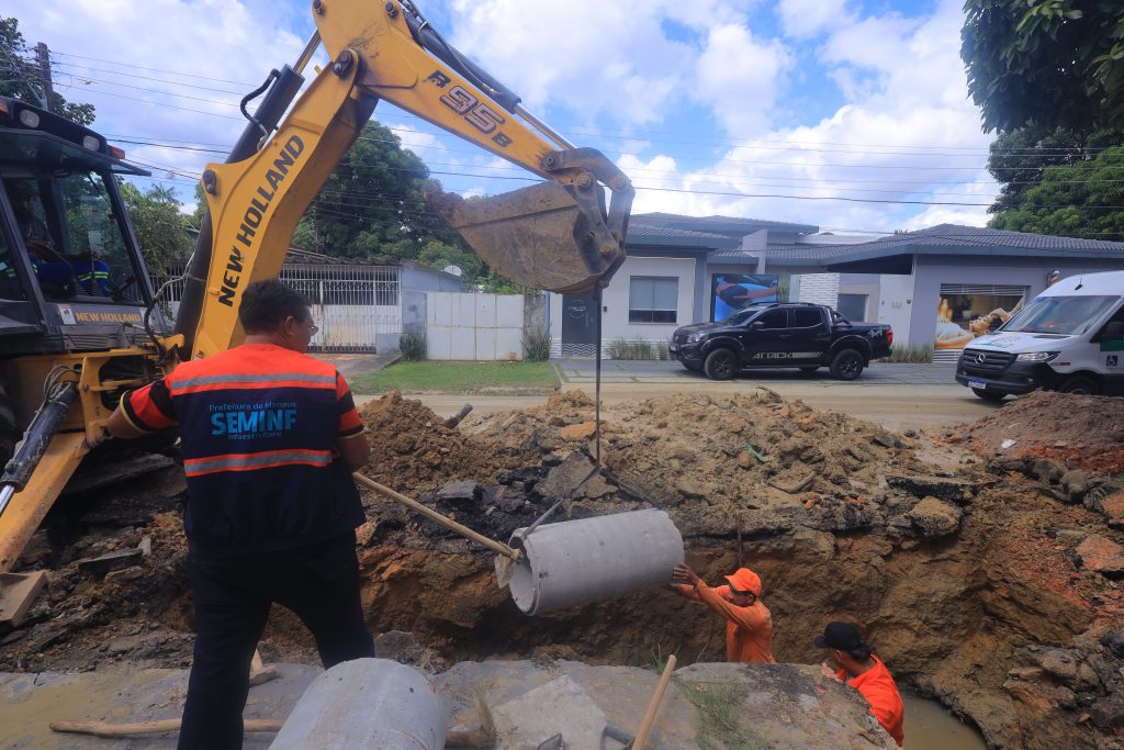 Prefeitura de Manaus realiza modernização de rede de drenagem profunda em via do conjunto Campos Elíseos