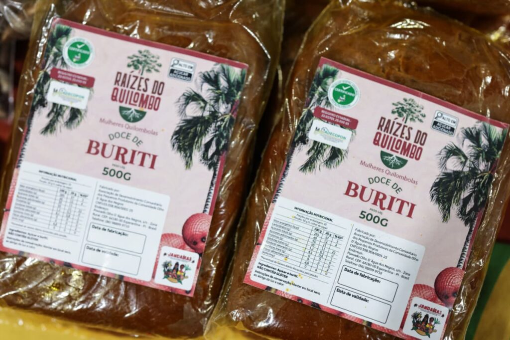 Para o evento, a comunidade trouxe diversos produtos à base do coco babaçu, como amêndoas, azeites e peças artesanais, além do doce de buriti, realizado em parceria com o projeto Jandaíra, que contém um selo de certificação.