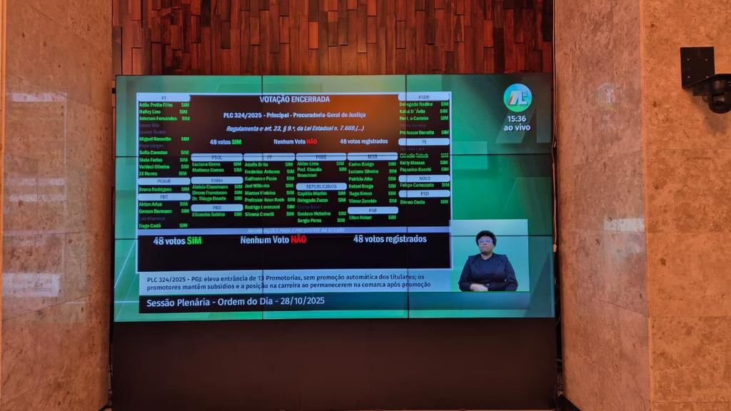 O projeto aprovado é o 324/2025, proposto pela Procuradoria-Geral de Justiça, que regulamenta o art. 23, § 9.º, da Lei Estadual 7.669, de 17 de junho de 1982, promovendo a elevação de Promotorias de Justiça de entrância inicial para intermediária e de entrância intermediária para final.