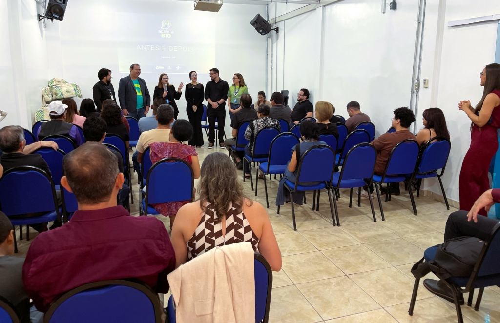 “O Sebrae está ao lado de vocês nesse processo de amadurecimento, desde a pré-aceleração até a escala, atuando como articulador desse ecossistema e conectando empreendedores a soluções e oportunidades de crescimento. Esse movimento posiciona a bioeconomia como um eixo estratégico de desenvolvimento regional, com potencial para gerar emprego, renda, inovação e atrair investimentos”, afirmou.