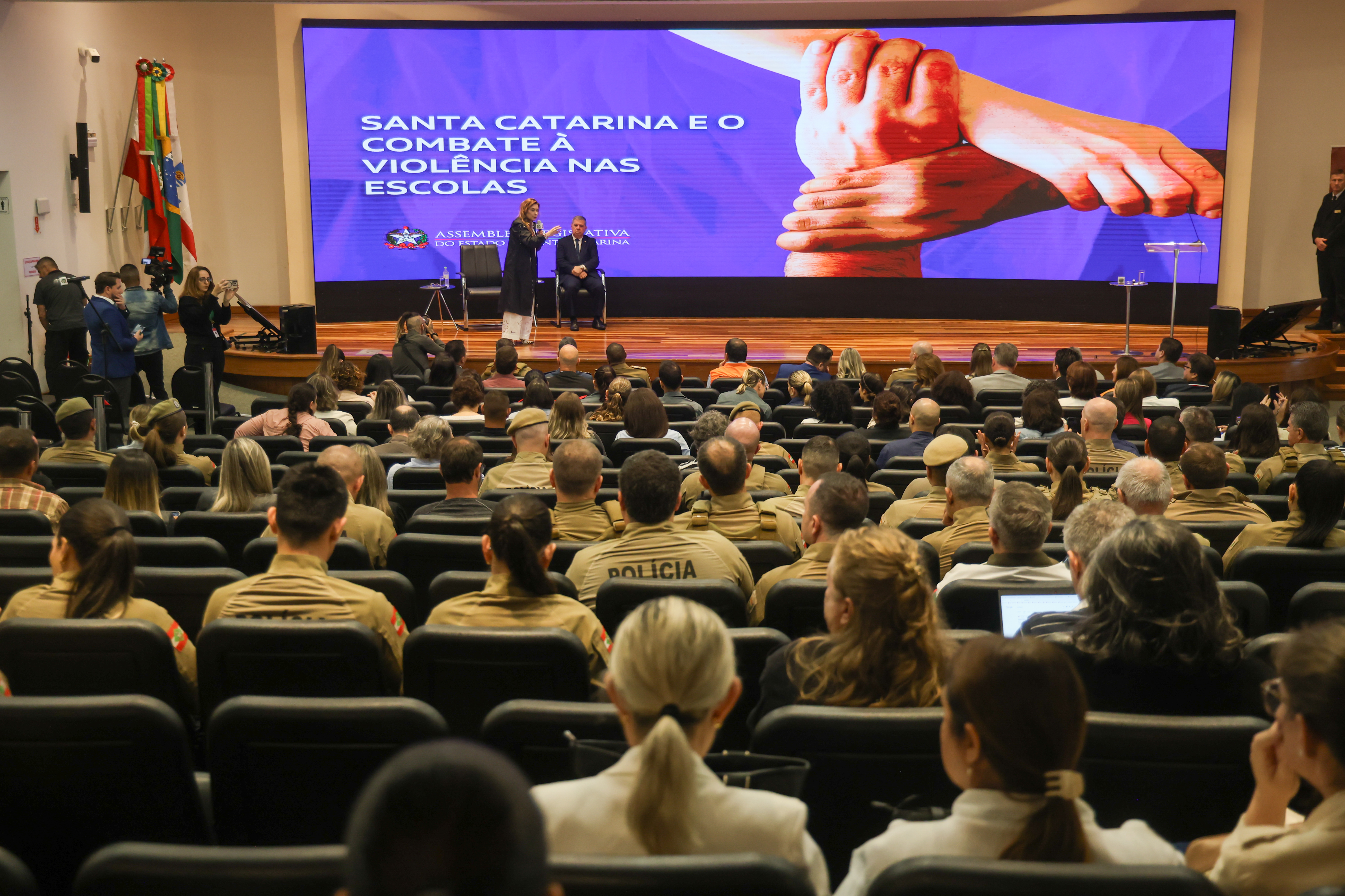 Representantes das instituições que compõem o Comitê Integrado de Cidadania e Paz nas Escolas (Integra) se reuniram nesta terça-feira, 18, no Auditório Antonieta de Barros, na Assembleia Legislativa de Santa Catarina, para a realização do 2º Seminário de Segurança Escolar: A infraestrutura como forma de prevenção à violência. Com presença massiva de profissionais das forças de segurança, da Educação e de outras instituições, o evento deste ano integrou as comemorações dos 90 anos da Secretaria de Estado da Segurança Pública (SSP-SC).