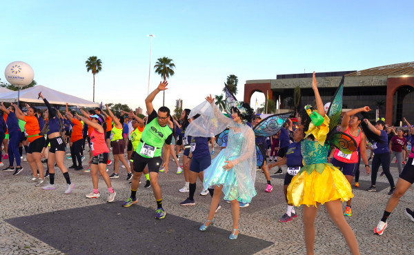 Enquanto os atletas se aqueciam para começar o percurso puderam interagir com os personagens da Cia. Final Feliz. O Chapeleiro Maluco e a Rainha de Copas, inspirados no universo de Alice no País das Maravilhas, foram algumas das figuras que circularam entre as famílias, atraindo crianças e garantindo registros fotográficos por toda a praça.