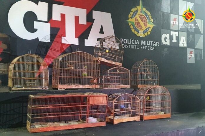 Policiais militares do Grupo Tático Ambiental (GTA) apreenderam nove pássaros da fauna silvestre que estavam sendo criados de foram irregular em Brazlândia.