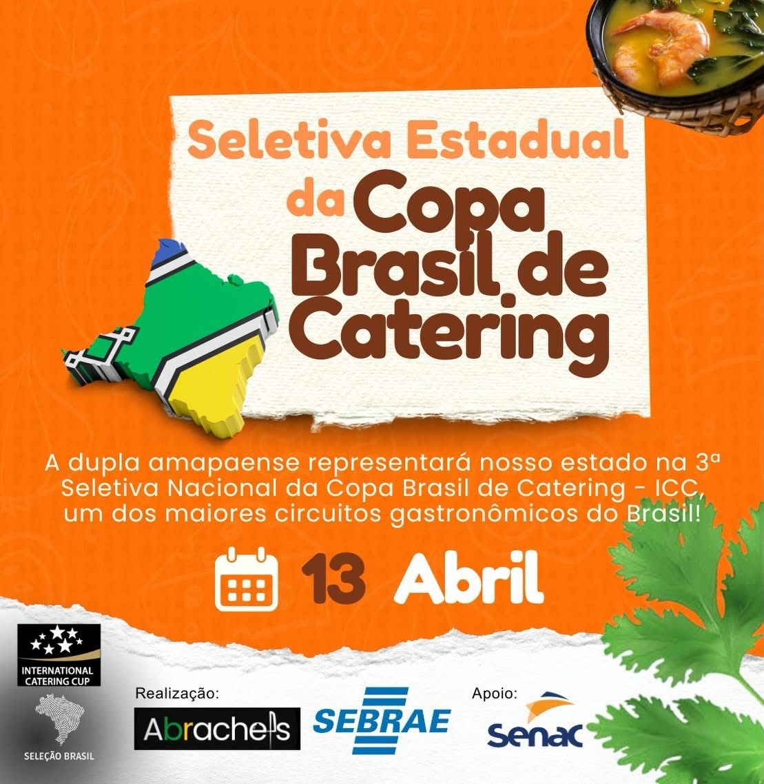 O Serviço de Apoio às Micro e Pequenas Empresas no Amapá (Sebrae) e o Sebrae Nacional em parceria com o Serviço Nacional de Aprendizagem Comercial (Senac) e a Associação Brasileira de Chefs de Cozinha e Bartenders (Abrachefs), estão com as inscrições abertas para a seletiva da Copa Brasil de Catering no Amapá, até esta sexta-feira (10). A competição ocorrerá na Cozinha Profissional do Senac, em Santana, no dia 13 de abril, das 7h às 19h. A iniciativa, vai selecionar uma dupla de chefs para representar o estado nas etapas regionais e nacionais da competição, que pode levar o vencedor à disputa mundial em Lyon, na França, em 2027.