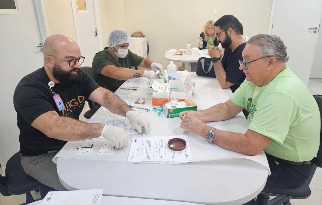 A Secretaria de Estado da Saúde (Sesapi), por meio da Coordenação de Doenças Transmissíveis, promoveu, nesta sexta-feira (24), o Dia D de Sensibilização da Sífilis, na Nova Maternidade Dona Evangelina Rosa (NMDER). Durante a ação, foram realizadas testagens rápidas para HIV, sífilis, hepatite B e C, além da dispensação de autotestes, atualização do cartão vacinal dos servidores e palestras educativas voltadas aos profissionais de saúde.