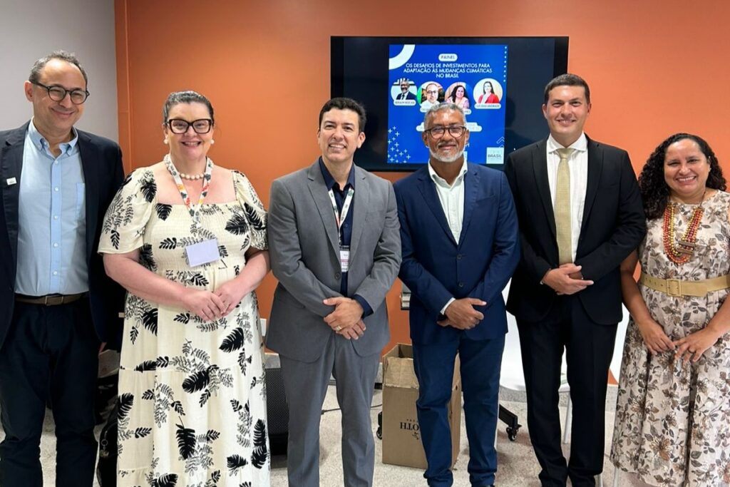 No sábado (15/11), Luciana Andrade integrou o painel “Os Desafios de Investimentos para Adaptação às Mudanças Climáticas no Brasil”, promovido pelo Instituto para o Clima, Meio Ambiente e Desenvolvimento Social na Green Zone da COP30. Também participaram o Procurador do Estado do Pará Ibrahim Rocha, o professor da UFPE e UFPB Talden Farias e a liderança quilombola Rosenilda Botelho Gomes.