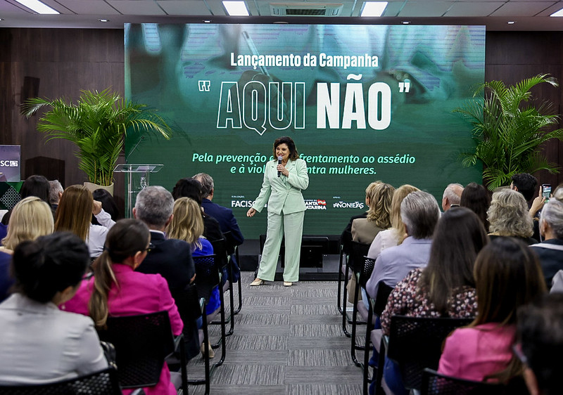 A vice-governadora de Santa Catarina, Marilisa Boehm, assinou a adesão do Governo do Estado ao protocolo de intenções para a criação da campanha “Aqui Não”, iniciativa da Federação das Associações Empresariais de Santa Catarina (FACISC), que conta também com a participação do Ministério Público de Santa Catarina (MPSC) e da NSC Comunicação. A ação, que será realizada em regime de mútua cooperação, tem como objetivo prevenir e enfrentar o assédio e a violência doméstica e familiar contra as mulheres. O ato foi celebrado na tarde desta terça-feira, 18, em Florianópolis.