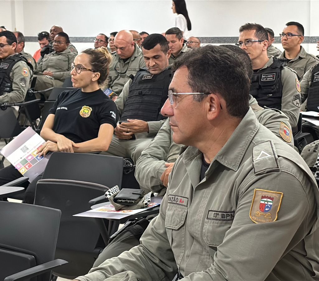 Além de apresentar o material que foi elaborado com base na cartilha do Ministério da Justiça: “Atuação Policial na Proteção dos Direitos Humanos de Pessoas em Situação de Vulnerabilidade”, o momento também teve reflexões sobre a violência de gênero, abordou sobre a Lei 11.340 e a rede de atendimento de enfrentamento à violência contra a mulher, trazidos pelo Namvid e a Ouvidoria da Mulher.